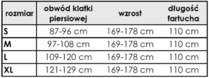 W zestawie z fartuchem rozmiarze XL- rękawice są w rozmiarze L.