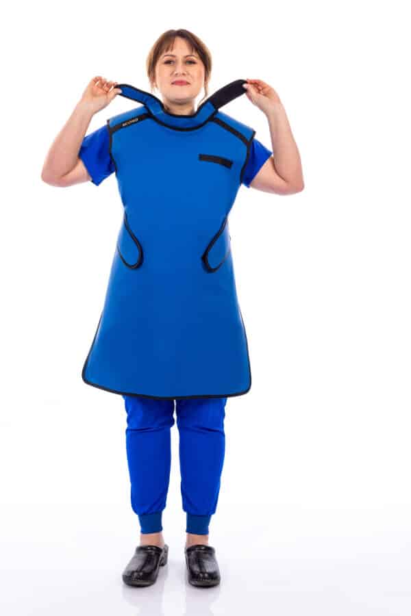 Fartuch RTG z wbudowaną osłoną tarczycy – Zintegrowana ochrona szyi zapewnia wygodę użytkowania.